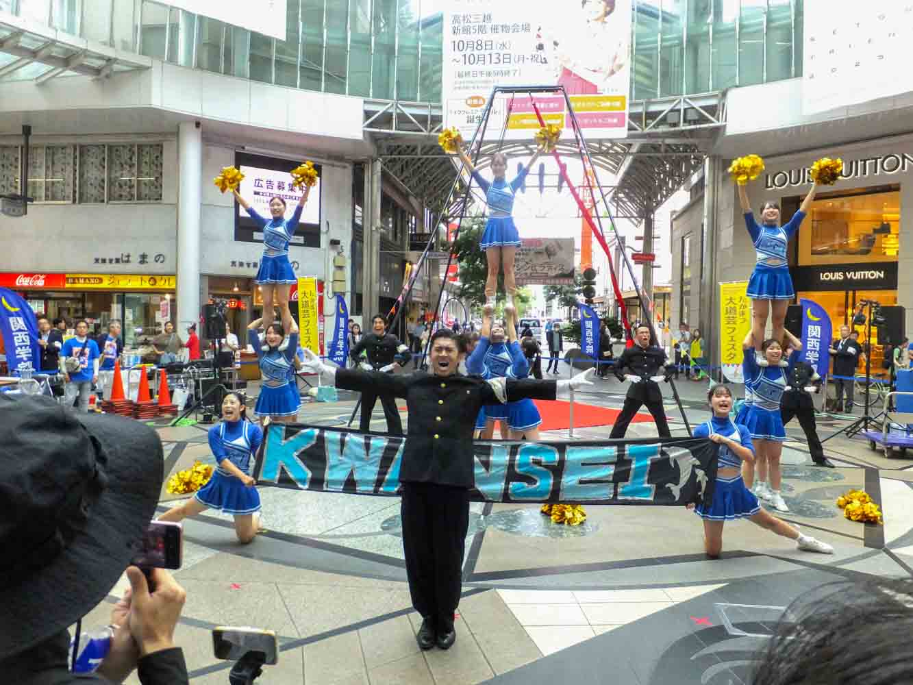 丸亀町壱番街前ドーム広場に響きわたった力強い応援団総部のエール&関西学院校歌!